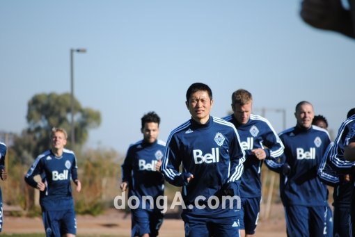 밴쿠버 화이트캡스 FC의 이영표가 3일(한국시간) 미국 애리조나에서 열린 전지훈련에서 동료들과 몸을 풀고 있다.