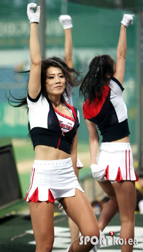 3일 오후 광주 무등구장에서 열린 `2012 팔도 프로야구` KIA 타이거즈와 SK 와이번즈의 경기에서 KIA 치어리더가 관중들 앞에서 안무를 펼치고 있다.