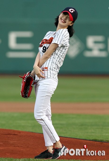 ‘2012 팔도 프로야구’ 롯데 자이언츠와 삼성 라이온즈의 경기가 8일 오후 부산 사직야구장에서 열렸다. 경기전 영화 `은교`의 여배우 김고은이 시구를 선보인 후 매력적인 미소를 짓고 있다.