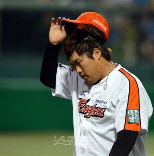 7일 저녁 대전 한밭야구장에서 열린 2012프로야구 한화와 롯데의 경기에서 한화 선발 투수 류현진이 5회초 이닝을 마치고 덕아웃으로 들어오고 있다.