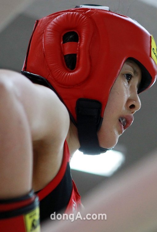탤런트 이시영이 6일 오후 서울시 송파구 한국체대에서 열린 ‘서울시 복싱대표선발전’에서 숨을 고르고 있다. 이시영은 지난 전국여자신인 아마추어 복싱 선수권대회 48Kg 정상에 오르며 수준급 실력을 과시했다.