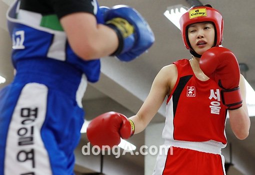 탤런트 이시영이 6일 오후 서울시 송파구 한국체대에서 열린 ‘서울시 복싱대표선발전’에서 상대 선수에게 펀치를 날리고 있다. 이시영은 지난 전국여자신인 아마추어 복싱 선수권대회 48Kg 정상에 오르며 수준급 실력을 과시했다.