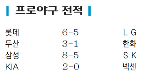 [오늘의 프로야구 전적]8월 8일
