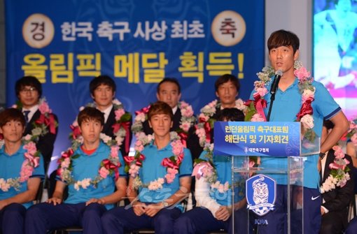 2012 런던올림픽에서 한국 축구 사상 최초로 올림픽 동메달을 획득한 올림픽 축구대표팀이 12일 인천국제공항을 통해 입국했다.