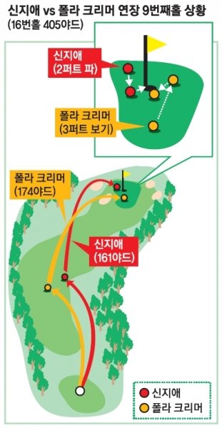 신지애와 폴라 크리머는 9일 밤 열린 정규 라운드에서 16언더파 268타로 승부를 내지 못하고 연장에 들어갔다. 8번째 홀까지 가는 접전을 펼쳤지만 끝내 우승자를 가리지 못했다. 날이 어두워져 더 이상 경기를 펼칠 수 없게 됐고, 10일 16번홀(파4)에서 연장전을 재개됐다.
