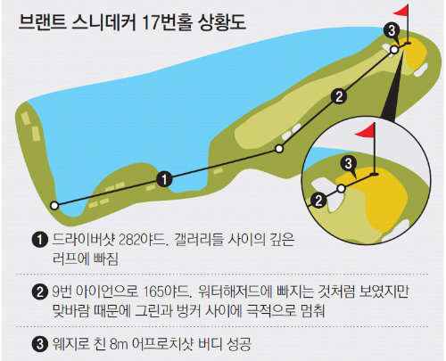 골프는 멘털(정신력) 승부다. 2타 차 공동 선두로 마지막 라운드에 나선 스니데커는 강했다. 6번홀(파3)에서 티샷을 워터해저드에 빠뜨려 더블보기를 범했지만 8번홀(파4) 버디로 이를 만회했다.