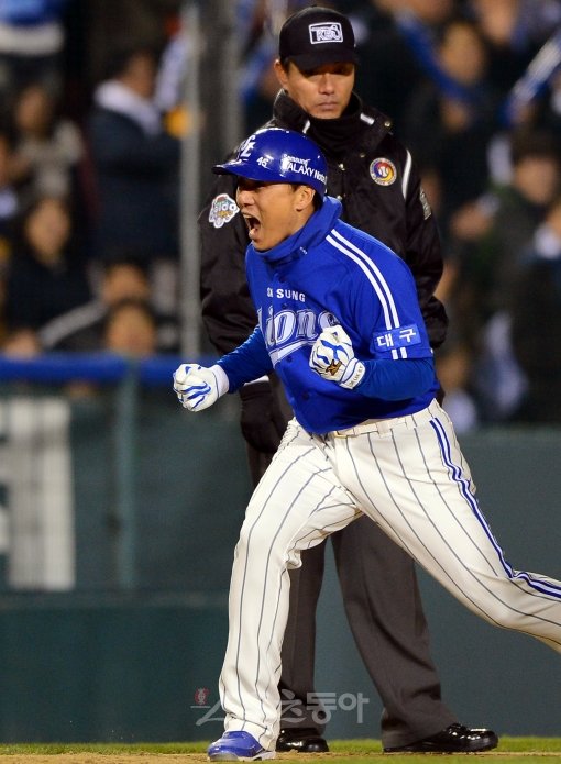 이승엽은 3루에서 사자처럼 포효했다. 이승엽은 이 적시타로 1회 무사 1-3루 찬스에서 3루수 파울 플라이로 물러난 아쉬움을 달래게 됐다.