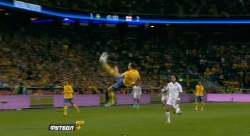 경기 종료 직전 이브라히모비치의 환상적인 골이 빛을 발했다. 잉글랜드의 조 하트 골키퍼가 페널티 지역 밖까지 나와 헤딩으로 걷어냈지만, 공은 멀리 가지 않았다. 이브라히모비치는 골문을 힐끗 본 뒤 그대로 195cm의 거구를 그대로 회전시키며 아크로바틱한 시저스킥을 작렬했다.