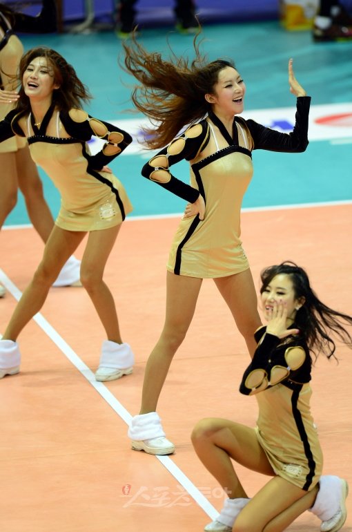 19일 오후 수원 실내체육관에서 열린 '2012-2013 NH농협 V리그' 현대건설과 GS칼텍스의 경기에서 현대건설 치어리더가 화려한 공연을 선보이고 있다.