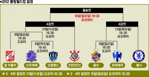 울산은 9일 나고야 인근 도요타 스타디움에서 북중미 클럽 최강 몬테레이(멕시코)와 1차전을 치른다. 여기서 승리하면 2011∼2012시즌 유럽축구연맹(UEFA) 챔피언스리그를 평정한 첼시(잉글랜드)와 결승 진출을 놓고 13일(요코하마) 격돌한다.