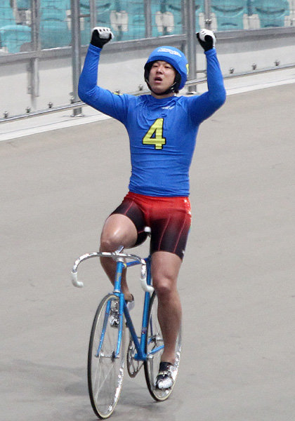 “빅매치에서도 통했다.” 이현구가 2월 23일 광명스피돔에서 생애 첫 대상경주 우승을 확정지은 후 두 팔을 들고 감격의 승리 세리머니를 하고 있다. 사진제공|국민체육진흥공단