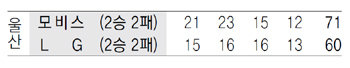 유재학 감독은 “양동근이 2점에 그치긴 했어도 활발하게 움직인 덕분에 박구영과 송창용이 결정적일 때 3점슛을 터뜨릴 수 있었다”고 했다. 모비스 이지원은 10득점.