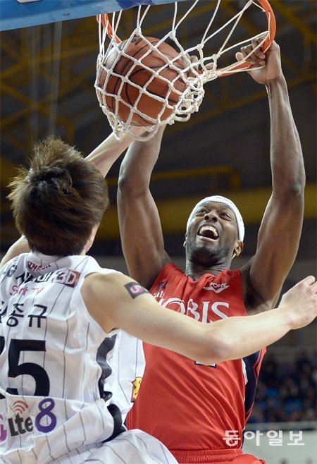 모비스 로드 벤슨(30·207cm)은 외국인선수 최초로 4시즌 연속 챔피언결정전(7전 4선승제)을 뛰고 있다. 영광의 주인공이 됐지만 5일 LG와의 3차전에서 14분 47초를 뛰며 1점에 그치는 수모를 안았다. 게다가 73-73으로 동점이던 경기 종료 12.6초 전 수비 실수로 LG 데이본 제퍼슨에게 뼈아픈 점프슛을 허용해 패배의 빌미가 됐다. 유재학 모비스 감독은 “그래도 외국인 선수인데 1점이 말이 되느냐”며 허탈해했다.