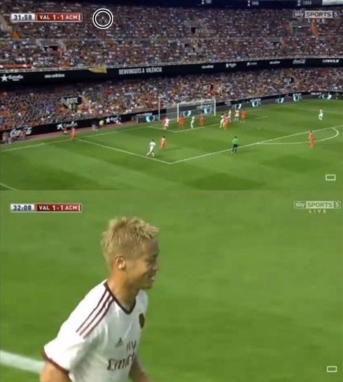 하지만 이도 잠시, 4분 뒤인 전반 32분 혼다가 왼발로 찬 코너킥이 관중석 2층보다 더 높이 날아갔다. 마치 야구의 홈런을 연상케 하는 황당한 장면에 관중들이 웃음을 터뜨렸고 혼다 본인도 멋쩍은 표정을 지었다.