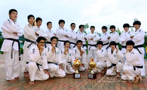 한국중·고등학교유도연맹 노승찬 전무는 여기저기서 축하를 받기에 바빴다. 감독으로 재직 중인 충북체고가 3일 김천 실내체육관에서 열린 ‘최민호·김재범 올림픽제패기념 2014 전국 중·고등학교 유도대회 겸 제42회 추계 전국 남녀 중·고등학교 유도연맹전’ 남녀 단체전 동반 우승을 차지했기 때문이다. 충북체고 유도부가 전국대회 단체전 우승을 이뤄낸 것은 올해 처음이었다. 게다가 남자부는 창단 후 첫 우승이라 기쁨이 더했다.