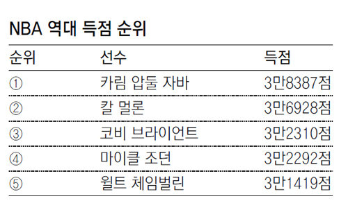 기록의 순도 면에서도 조던이 월등히 앞선다. 브라이언트의 기록은 19년 동안 작성한 것인 반면에 조던은 15년 동안 3만2292점을 기록했다. 경기당 평균득점도 조던은 30.1점, 브라이언트는 25.5점이다. 득점왕도 조던은 10차례 오른 반면에 브라이언트는 2차례만 했다. 자유투 성공률에서는 브라이언트 83.7%, 조던 83.5%로 거의 같다. 브라이언트가 조금 앞서는 게 3점슛이다. 브라이언트는 33.4%, 조던은 32.7%였다.