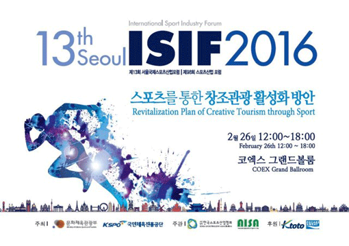 제13회 서울 국제 스포츠산업포럼이 26일 낮 12시 서울 삼성동 코엑스 그랜드볼룸에서 개최된다. 사단법인 한국스포츠산업협회가 주관하는 이번 포럼은 ‘스포츠를 통한 창조관광 활성화 방안’을 주제로 미국, 리투아니아, 중국, 일본, 한국 등 5개국 7명 전문가의 주제 발표로 진행된다.