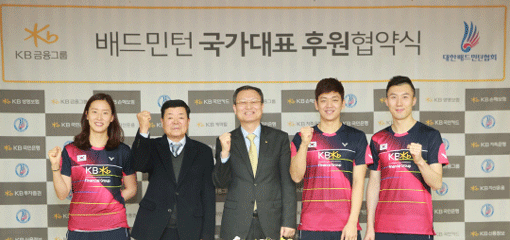 KB금융그룹과 대한배드민턴협회는 24일 서울 종로구 KB금융그룹 명동본점에서 배드민턴국가대표팀 후원 협약을 체결했다. 앞으로 3년간 KB금융그룹은 배드민턴 국가대표팀을 후원하며 대표팀은 KB금융그룹 로고가 새겨진 유니폼을 입고 국제대회에 참가한다. 이날 협약식은 국가대표 이용대, 유연성, 장예나가 참석했다. 28일까지 서울국제스포츠레저산업전 개최