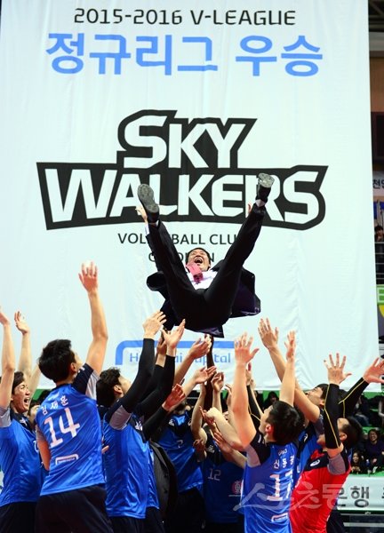 현대캐피탈 최태웅(40) 감독이 25일 안산 상록수체육관에서 OK저축은행을 꺾으면서 정규리그 2경기를 남겨놓고 마침내 우승을 확정지었다. 그가 처음 현역선수에서 바로 감독에 발탁됐을 때 오늘과 같은 결과를 예상한 사람은 없었다. 스스로도 이런 결과가 올 것이라고는 몰랐다고 했다. 2016년 들어 단 한번도 지지 않는 팀을 이끌며 우승이라는 꽃술을 단 감독은 “지금도 어리둥절하다”고 했다.