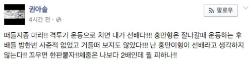 권아솔 “떠들지좀 마! 운동으로 치면 내가 선배” 최홍만에 제차 도발