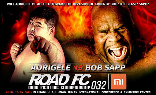 밥샙(44)과 아오르꺼러(21)가 케이지 위에서 한판 승부를 벌인다. 무대는 7월2일 중국 창사 후난국제전시센터에서 열리는 ‘샤오미 로드FC 032’대회 무제한급이다. ‘뉴웨이브 MMA’ 로드FC(대표 정문홍)는 25일 ‘샤오미 로드FC 032’의 대진을 첫 공개했다. 강 대 강이다. 미국을 대표하는 ‘베테랑’ 밥샙과 중국의 영건 아오르꺼러의 대결은 최고의 흥행카드가 될 법하다.