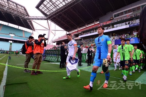 전북 현대 스카우트가 심판 매수 혐의로 불구속 기소되면서 축구계가 또 위기를 맞았다. 일벌백계는 물론 축구계 구성원 모두 재도약을 위한 진정한 노력을 기울여야 한다. 지난 24일 전주월드컵경기장에서 열린 전북 현대와 멜버른 빅토리의 AFC 챔피언스리그 16강 2차전에 앞서 양팀 선수들이 입장하고 있다. 스포츠동아DB