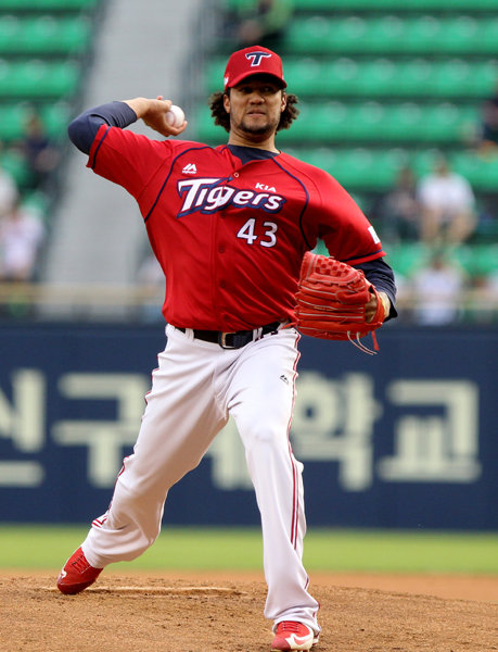 KIA 헥터가 1일 잠실 LG전에서 119구를 던지는 역투로 7이닝 무실점을 기록하며 팀을 3연패에서 구해냈다. 사진제공|스포츠코리아