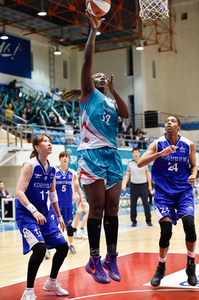 KEB하나은행 소속으로 여자프로농구 2015~2016시즌을 뛴 첼시 리(가운데)의 출생증명서가 위조된 것으로 드러났다. 첼시 리는 한국 국적의 할머니를 둬 ‘해외동포선수’ 자격을 받았지만 검찰 수사 결과 실질적 가족관계를 찾을 수 없었다. 사진제공|WKBL
