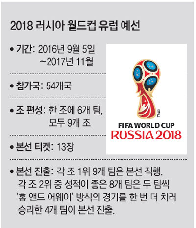 2018 러시아 월드컵 본선행 티켓이 가장 많이 걸려 있는 유럽 예선이 5일 시작돼 2017년 11월까지 1년 2개월간의 장기 레이스에 들어갔다.