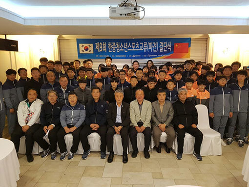 매년 양국을 오가며 개최되고 있는 한중 생활체육과 청소년 스포츠교류가 중국에서 열렸다. 11월1일 중국 광둥성 자오칭에서 열린 제9회 한중청소년스포츠교류 참가에 앞서 개최된 선수단 결단식. 사진제공 ㅣ 대한체육회