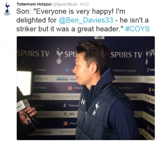 후반 26분 결승골을 넣은 동료 수비수 벤 데이비스에 대해서는 “그가 골을 넣었을 때 모두가 놀랐다. 그는 스트라이커가 아니지만 멋진 헤딩골이었다”며 “기쁘다. 그에게 축하를 전해주고 싶다”고 말했다.