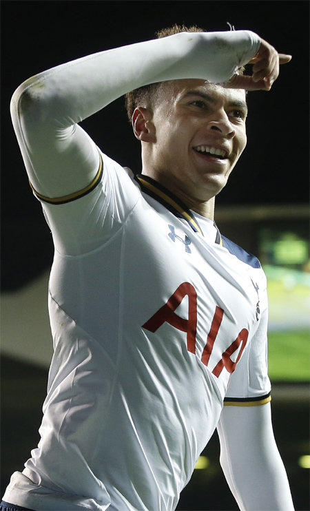 손흥민(25)이 뛰고 있는 잉글랜드 프리미어리그(EPL) 토트넘을 대표하는 선수는 지난 시즌 EPL 득점왕을 차지한 공격수 해리 케인(24)이다. 그런 케인의 위상에 도전하는 만만치 않은 상대가 나타났다. 이제 겨우 EPL에서 두 번째 시즌을 맞고 있는 공격형 미드필더 델리 알리(21·사진)다.