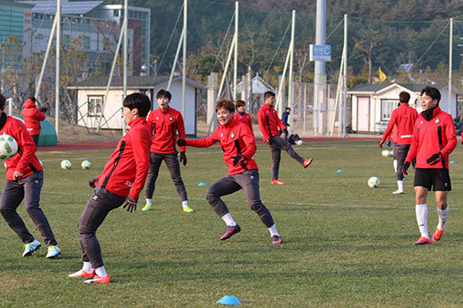 새해 초도 아주 뜨겁다. 5일부터 경남 통영에서 1차 동계전지훈련을 한창 진행하고 있다. 20여명으로 출발해 하나둘씩 늘어난 선수단 규모(코칭스태프 제외)는 어느새 32명이 됐다. 지난해 경남FC 소속으로 챌린지 득점 2위에 오른 크리스찬 등 외국인선수 3총사도 합류해 새 동료들과 손발을 맞추고 있다.