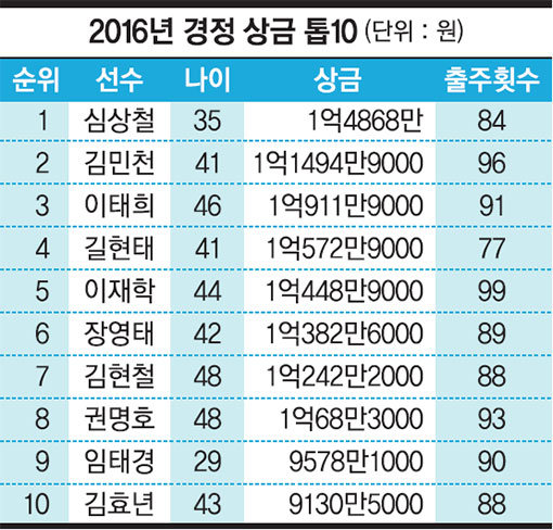 2016시즌 다승, 상금, 전체성적 3관왕 심상철(35·7 기)이 경정 역사상 최고상금 기록 보유자가 됐다.