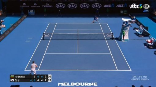 테니스 선수 정현(21·세계랭킹 104위)이 호주오픈 2회전에서 세계랭킹 15위 그레고르 디미트로프(불가리아)를 상대로 선전하고 있다.