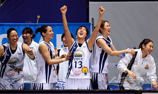 신한은행 신입사원들은 23일 KEB하나은행전이 열린 인천 도원체육관을 찾아 열띤 응원의 목소리를 토해냈다. 이날 70-49로 크게 이긴 신한은행은 올스타 브레이크 이후 2경기에서 모두 승리를 챙겼다. 순위도 공동 3위로 올랐고, 플레이오프(PO) 진출 가능성도 더 높아졌다. 신한은행 신기성(42) 감독은 “다음 경기(30일 KB스타즈전)까지 일정에 여유가 있어 선수들을 푹 쉬게 해줄 생각이다”며 이틀간 외박을 허용했다. 김단비는 “우리 팀은 지금이 올스타 휴식기나 마찬가지다”며 기분 좋게 외박길에 나섰다.