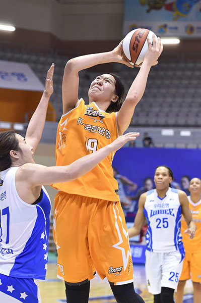 여자프로농구 KB스타즈의 슈퍼루키 박지수(19·193cm)는 3일 아산 이순신체육관에서 벌어진 우리은행과의 원정경기에서 30점·21리바운드를 기록하는 기염을 토했다. 여자프로농구 출범 이래 국내선수가 한 경기에서 30점·20리바운드를 올린 것은 2000년 여름리그에서 삼성생명 정은순(은퇴)이 32점·20리바운드를 기록한 이후 17년만이다.