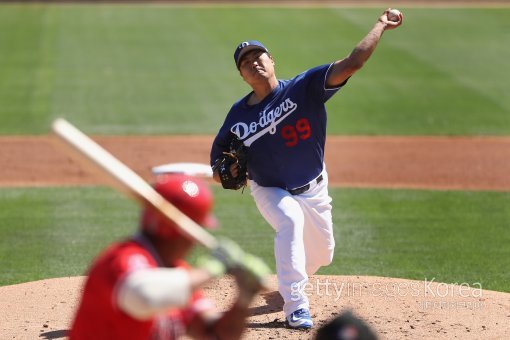 류현진은 12일(한국시간) 미국 애리조나주 글렌데일의 캐멀백랜치에서 열린 LA 에인절스와 시범경기에 선발등판해 2이닝 1안타 2탈삼진 무실점을 기록했다. 투구수는 26개. 4사구는 없었고, 직구 최고구속은 91마일(약 147㎞)이었다.