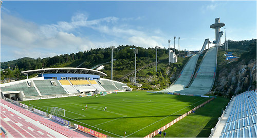 강원의 안방인 평창 알펜시아 스타디움은 스키점프대의 착지 지점을 축구장으로 변신시켜 만들었다. 3월 11일 서울과 홈 개막전을 치르기 위해 전 직원이 동원돼 3주 가까이 눈을 치우고 얼음을 깨는 등 고생하며 준비했지만 잔디가 제대로 자라지 않은 데다 이전에 뿌려놓은 비료 때문에 악취가 난탓에 혹평을 들어야 했다. 지금은 잔디가 잘 자랐고 팀 성적도 좋아 도민들이 좋아하는 구장이 됐다. 강원FC 제공