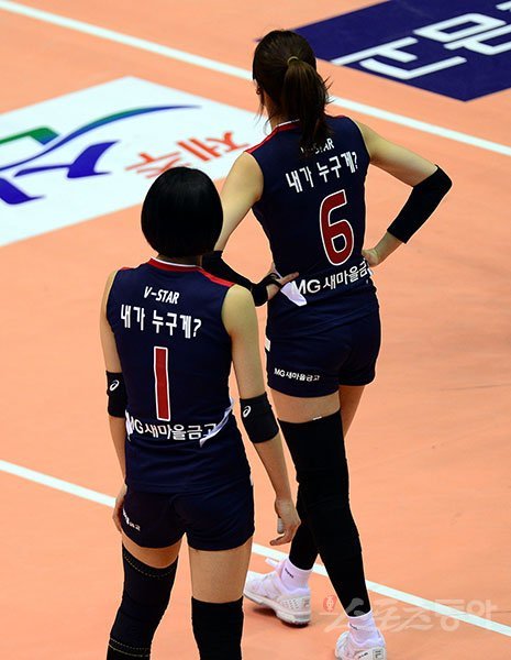 21일 의정부체유관에서 열린 ‘도드람 2017~2018 V리그’ 올스타전 참가 선수들은 유니폼 에 새겨진 이름부터 개성을 담았다. 여자배구 대표 얼짱 고예림은 소속팀 IBK기업은행의 홈 코트인 경기도 화성과 새하얀 피부를 결합해 ‘화성밀가루’로 별명을 정했다. 드라마 ‘또 오해영’의 여배우 서현진과 닮은 이미지의 황민경도 소속팀 현대건설의 연고지를 더해 ‘수원 서현진’으로 출전했다. 흥국생명 세터 조송화도 아이돌 설현을 닮은 외모와 이름을 합성해 ‘설현씨조송홥니다’라고 이중적 의미를 주는 재치를 더했다.