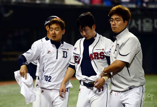 이런 ‘아비규환’의 틈바구니에서 박건우가 쓰러져 일어나지 못하는데도 아무도 관심이 없었다. 승리의 기쁨이 다소 진정된 뒤, 오재원 등 일부 두산 선수가 박건우를 일으켜 세워보려고 했는데 끝내 일어나지 못했다. 오히려 박건우는 완전히 쓰러졌다.