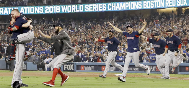 LA 다저스 4번 타자 매니 마차도가 9회말 27번째 아웃을 확정 짓는 헛스윙을 하는 순간 숨죽이며 투타 대결을 바라보던 보스턴 선수들은 두 팔을 번쩍 들고 포효했다. 보스턴이 5년 만에 메이저리그 월드시리즈(WS) 우승을 맛보는 순간이었다.