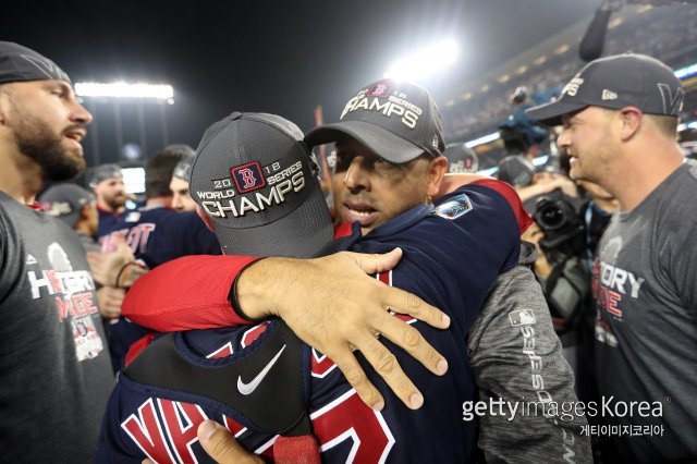 ‘초짜 감독’답지 않은 독기였다. 보스턴 레드삭스의 월드시리즈 우승을 이끈 알렉스 코라(오른쪽) 감독은 포스트시즌(PS) 내내 파격적인 선수 운용을 선보였다. 패하더라도 손실을 최소화하면서 이기는 경기에 총력전이 가능토록 했다. PS를 치르고 있는 KBO리그 팀들이 반드시 참고해야 할 포인트다. 사진=게티이미지코리아