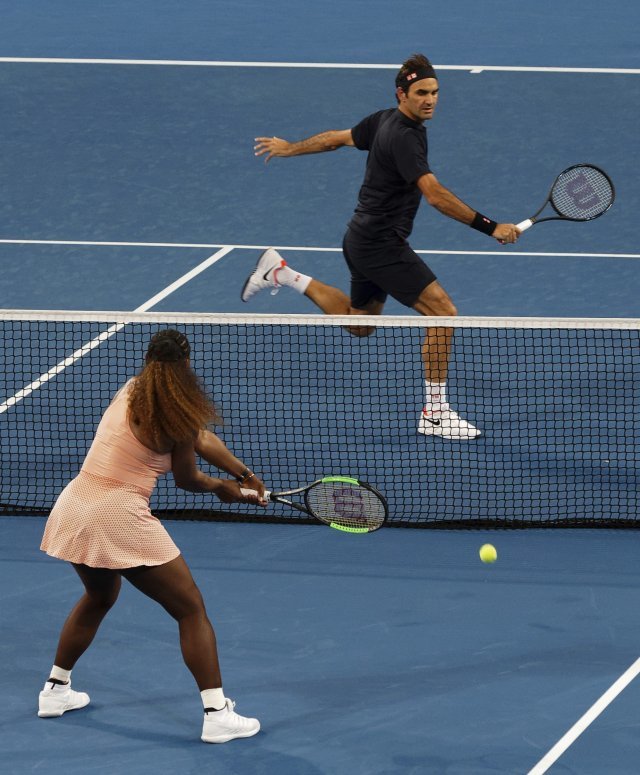 페더러와 윌리엄스는 1일 호주 퍼스에서 열린 호프먼컵 조별리그 혼합복식 경기에 나섰다. 페더러 조가 세레나 조를 2-0(4-2 4-3<5-3>)으로 꺾었다.