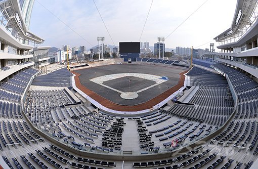 현재 공정률을 91%로 진입로 마무리 공사가 한창 진행 중이다. 올 시즌 시범경기 전까지 완공하는데 큰 무리가 없는 상태다.