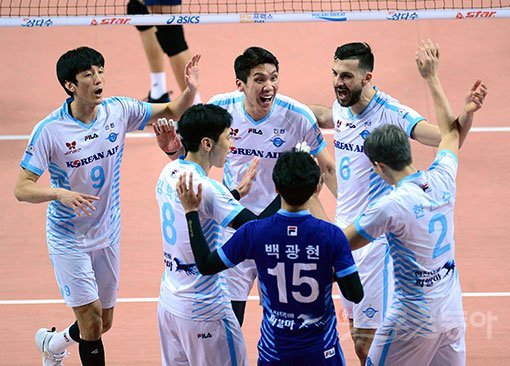 대한항공은 6일 장충체육관에서 열린 우리카드와의 ‘2018~2019 도드람 V리그’ 5라운드 맞대결서 세트스코어 3-0(25-23 25-19 25-20) 완승을 거뒀다. 화려한 날개 공격진의 강점을 톡톡히 발휘했다. 미차 가스파리니가 20점, 곽승석이 15점으로 공격을 양분했다. 우리카드(승점 53)의 5연승 행진을 막아 세운 대한항공은 승점 3을 추가해 2위(승점 55)로 올라섰다. 17개 범실을 저지른 우리카드는 3위로 밀려났다.