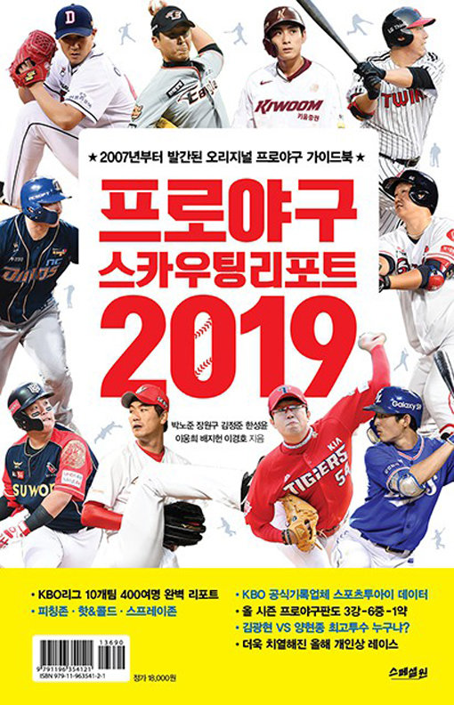 ‘프로야구 스카우팅리포트 2019’가 발간됐다. 박노준 우석대 교수가 대표저자로 집필했고, 김정준 해설위원, 장원구 스페셜원 편집장, 이경호 스포츠동아 기자, 한성윤 KBS 차장, 이웅희 스포츠서울 팀장, 배지헌 MBC 스포츠+ 기자가 함께 참여했다.