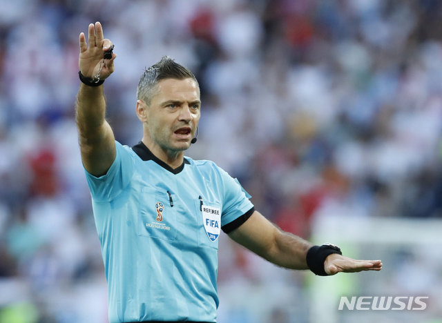 슬로베니아 출신 다미르 스코미나 심판이 2018~2019 유럽축구연맹(UEFA) 챔피언스리그 결승전에서 휘슬을 분다.
