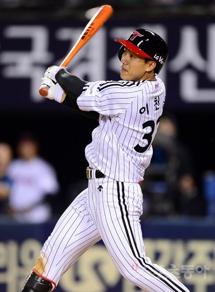 12일 서울 잠실야구장에서 ‘2019 신한은행 MY CAR KBO리그’ 롯데 자이언츠와 LG 트윈스의 경기가 열렸다. LG 이천웅이 선두타자로 나와 안타를 치고 있다. 잠실|김진환 기자 kwangshin00@donga.com