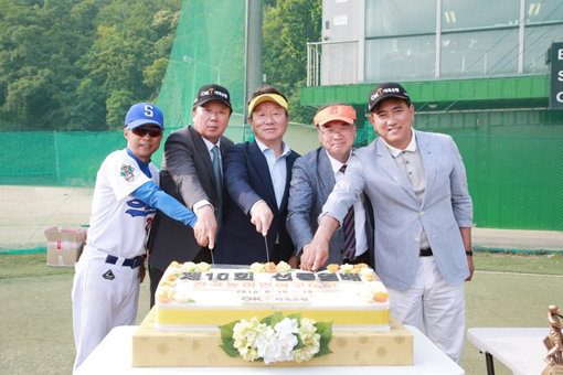 OK저축은행이 후원하는 ‘제10회 선동열배 전국농아인야구대회’가 올해로 10주년을 맞았다. 16일 안산 배나물야구장에서 한국농아인야구소프트볼연맹 전현호 이사, 선동열 전 야구대표팀 감독, 아프로서비스그룹 최윤 회장, 농아인야구소프트볼연맹 조일연 회장, OK저축은행 정길호 대표(왼쪽부터)가 10주년을 자축하며 기념촬영을 하고 있다. 자신의 이름을 딴 대회에 시구자로 나선 선 감독은 “나도 이들을 보며 많은 것을 배운다. 앞으로도 계속해서 야구에 대한 열정을 잃지 않길 바란다”고 당부했다. 사진제공|OK저축은행
